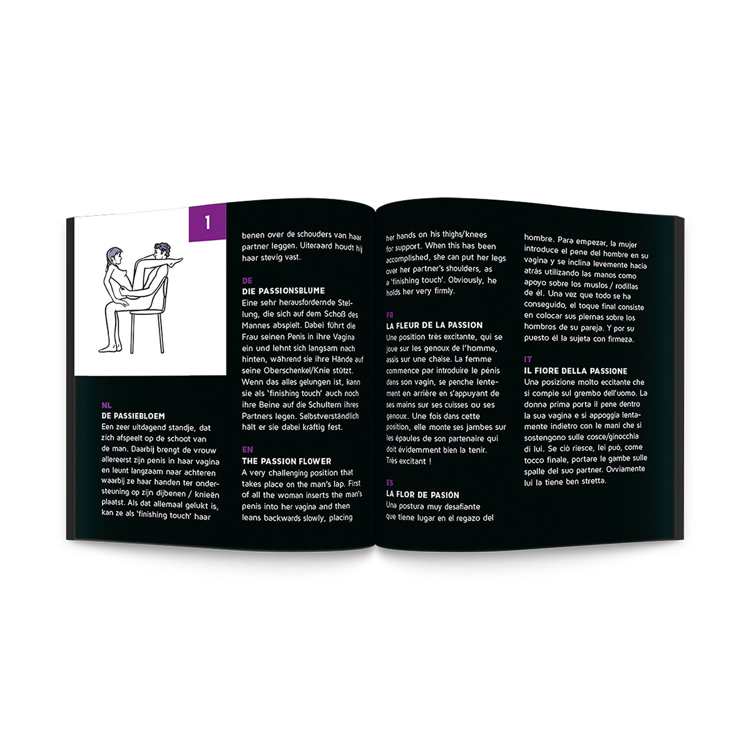 The 24 dares in the Kama Sutra edition are available in 10 languages: English, Spanish, French, German, Dutch, Polish, Russian, Italian, Swedish and Norwegian and will take your sex life to new heights of variation and sexy sensations.