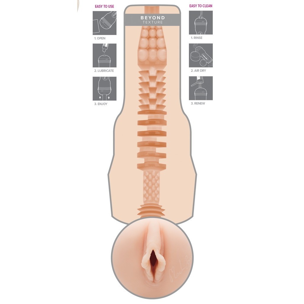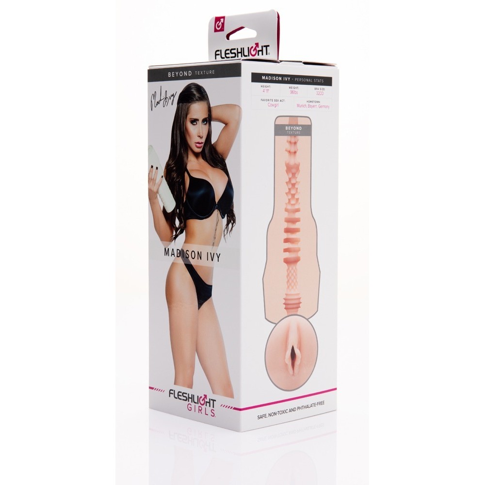 Madison Ivy Beyond enthält eine realistische Nachbildung der Vagina von Madison Ivy, verpackt in einer hochwertigen perlweißen Box. Weitere Highlights sind die künstlichen Schamlippen und die Unterschrift der Schauspielerin. Das Superskin-Material der Hülle sorgt für ein extrem realistisches, hautähnliches Gefühl. Im Inneren sorgt eine spezielle Noppentextur für intensive und umhüllende Stimulation.