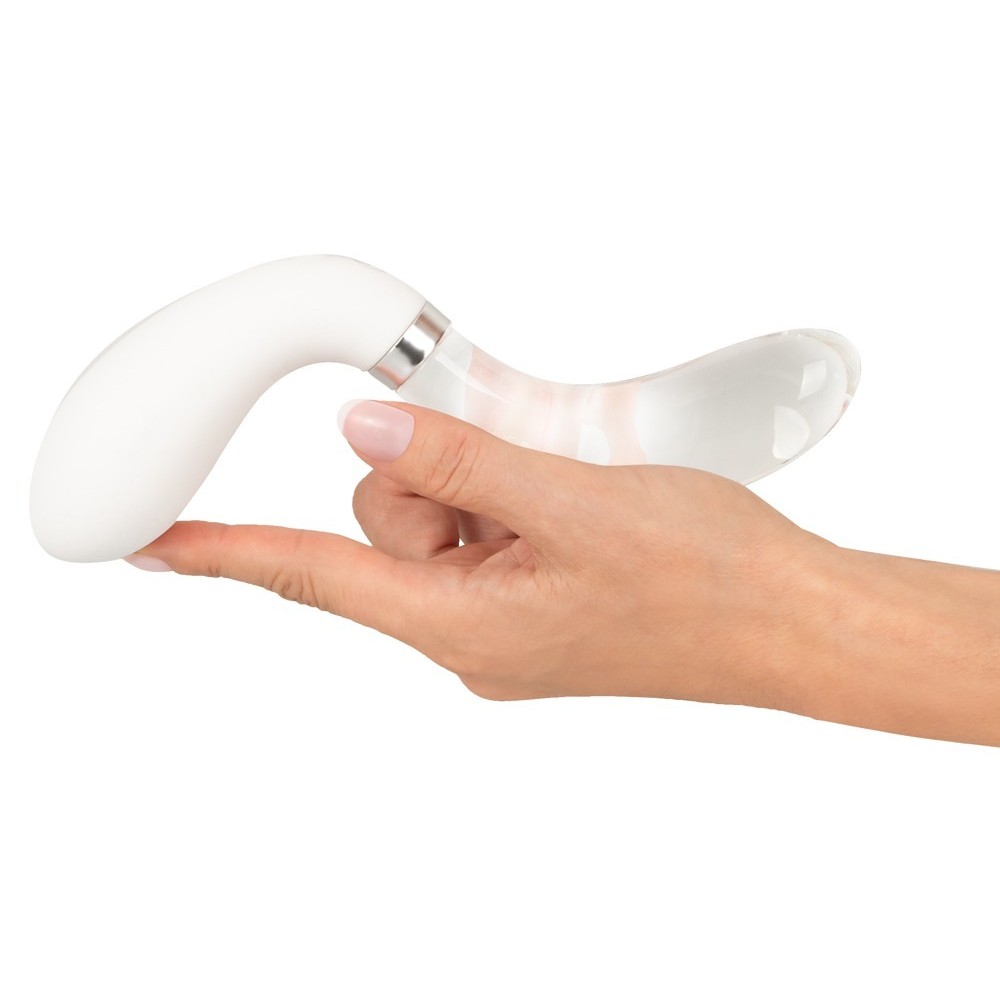 Das hochwertige, hautfreundliche Material (Silikon und Glas) gleitet sanft über die Haut und die Intimbereiche. Der Curve LED ist dank seiner glatten Oberflächen leicht zu reinigen, und die Glas-Spitze kann erwärmt oder gekühlt werden, was sensorische Erfahrungen mit unterschiedlichen Temperaturen ermöglicht.
