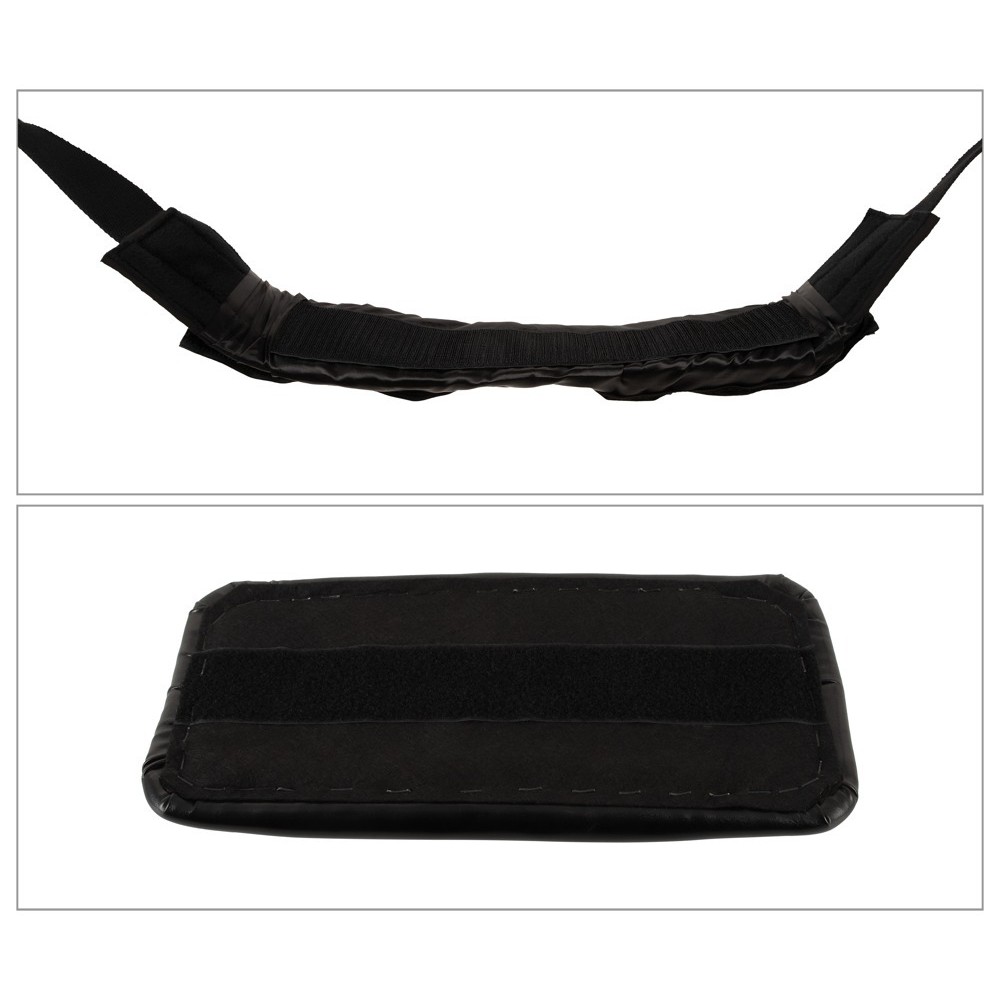 Der weiche Sitz und die beiden verstellbaren Rücken- und Kopf-/Nackenkissen sowie die beiden Plüschgriffe für Hände, Beine oder Füße sind an reißfesten Gurten befestigt, die alle individuell verstellbar sind. Der Sitz kann dank des Klettverschlusses auch abgenommen werden.