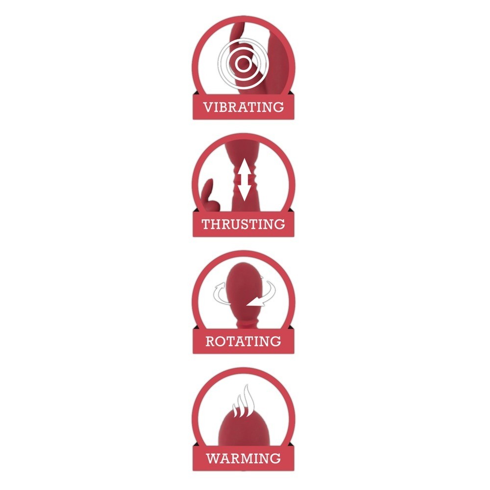 Dieser rote Rabbit-Vibrator mit eleganten schwarzen Details verspricht, ein Feuer der Lust zu entfachen. Der Schaft verfügt über stimulierende Reliefrillen für eine direkte Stimulation der Vagina und des G-Punkts. Der klitorisstimulierende Rabbit hat sinnliche, flexible Ohren und bietet ein umfassendes Erlebnis.