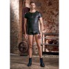 Gerad geschnittenes Top aus elegantem, mattschwarzem Material mit einem kurzen Reißverschluss aus Messing auf der Vorderseite. Es besticht durch D-Ringe an den Schultern und auffällige Schleifen an den Ärmeln. Wunderbar elastisch für eine perfekte Passform.
