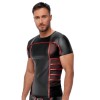 Eng anliegendes Kurzarm-Shirt von NEK in mattem Schwarz mit kontrastierenden roten Streifen. Mit Einsätzen aus feinem, transparentem Strick an den Seiten und unter den Armen. Weich und rundum elastisch – garantiert höchsten Tragekomfort und einen auffälligen Look.