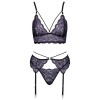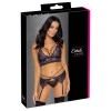 Set von Cottelli LINGERIE bestehend aus BH, Strumpfgürtel und String, komplett aus zweifarbiger Blumen-Spitze. Die Spitze ist weich und elastisch und garantiert höchsten Tragekomfort. Der Bralette hat keinen Verschluss und verfügt über gekreuzte elastische Träger zwischen den Cups ohne Bügel. Der Strumpfgürtel zeichnet sich durch dekorative elastische Bänder aus, die die Taille umschließen. Die Träger des BHs und die Strumpfhalter sind verstellbar. Die zarte Spitzenkordel rundet dieses bezaubernde Set ab.