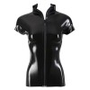 Dieses Latexhemd ist an der Taille tailliert und hat kurze Ärmel. Es sitzt wie eine zweite Haut und ist unwiderstehlich sexy. Der durchgehende Reißverschluss vorne ermöglicht es der Trägerin zu entscheiden, wie viel sie von ihrem Körper zeigen möchte.