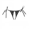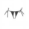 Teasing skinny ribbons decorate the hips, waiting to be undone. Scalloped lace outlines a provocative ouverte front, while the Brazilian back is topped with a triangle of sheer mesh.