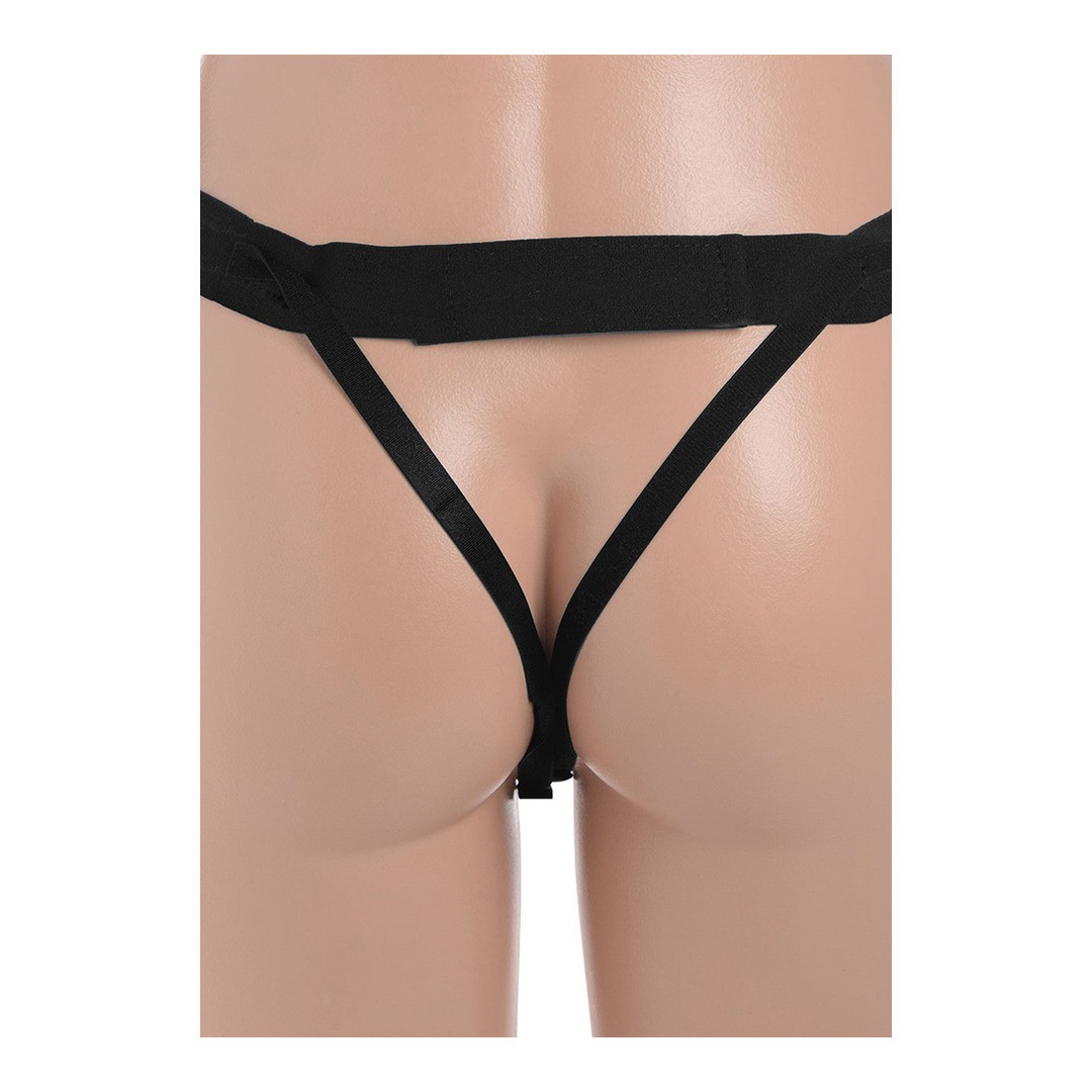 This hollow strap-on lengthens and thickens your penis in a practical and easy-to-use set. The extra-wide harness keeps the dildo firmly in place, allowing you to penetrate, thrust and pleasure your lover without worry, while the ejaculation tip allows you to climax wherever you want.