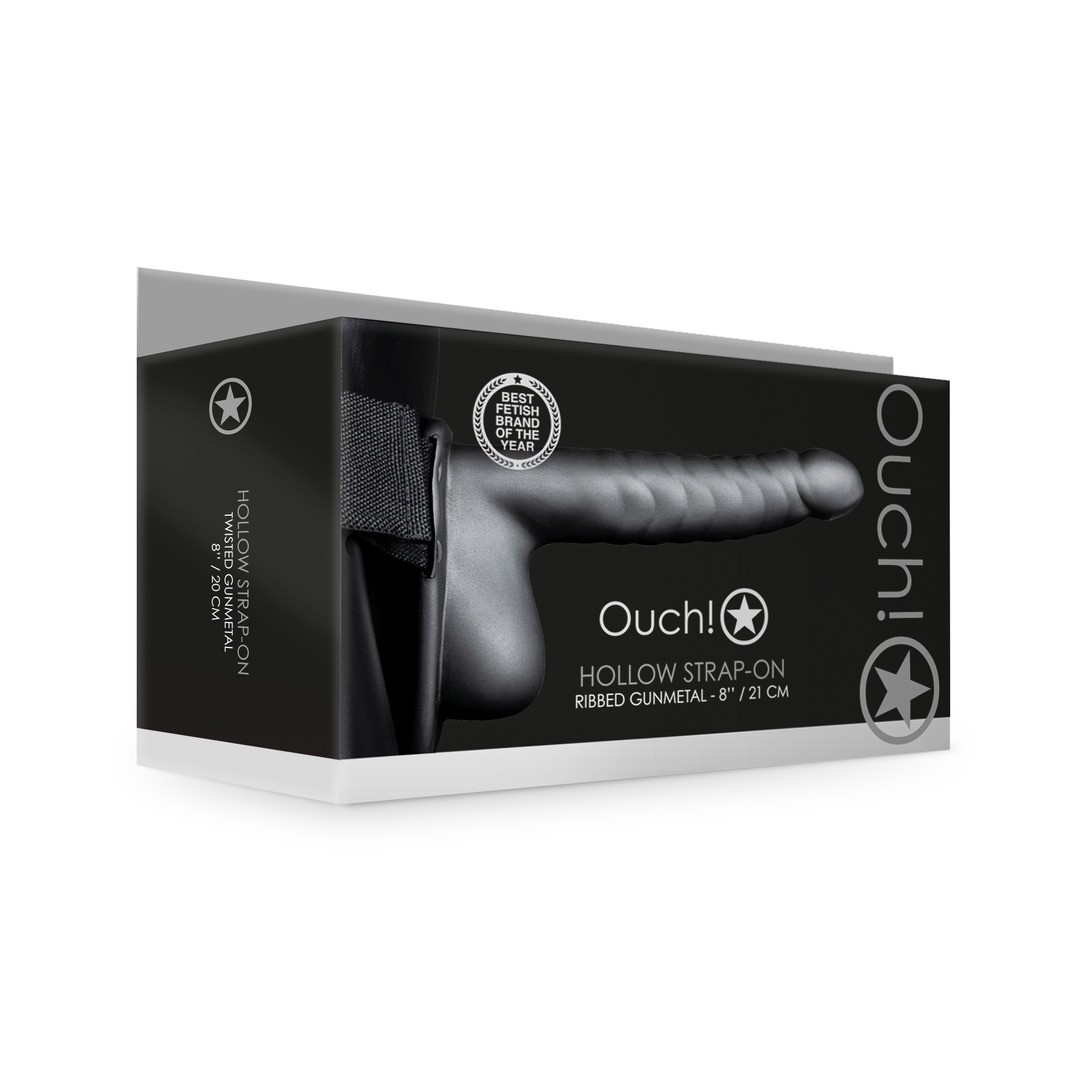 OUCH! RIBBED HOLLOW STRAP-ON WITH BALLS 8 / 21 CM