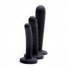 Set of 3 flexible silicone dildos with suction cups for gradual preparation and stimulating anal or vaginal pleasure.