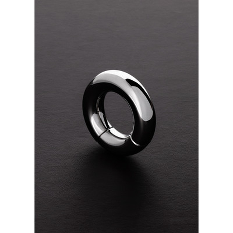 Simply remove the wedge, pass the scrotum through the opening and put it back on; the magnets ensure that the ring stays firmly attached, without the need for tools or keys. Removal is just as quick, ideal for easily taking off weights.
