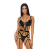 2-piece lingerie set with matt synthetic leather corset and cheetah print.