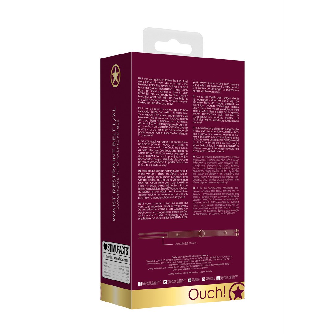 If you're going to follow the rules, do it in style. The luxurious colour, the sophisticated look of the leather and the elegant gold details make Ouch! Halo the most prestigious item in your BDSM kit. Are you ready to play, angel?
