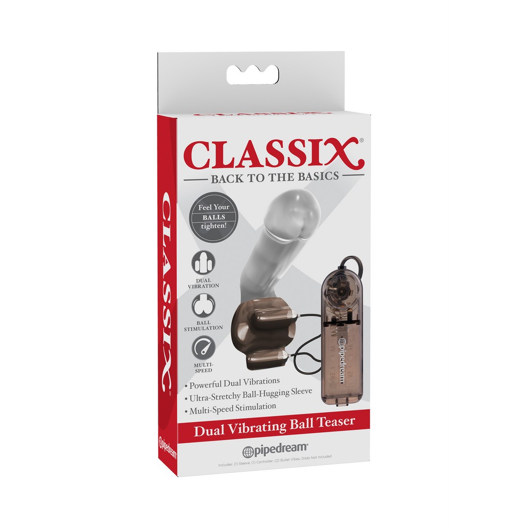 Double the pleasure, double the fun: two vibrating bullets are always better than one! Enjoy two vibrating bullets that slide into an elastic sleeve, which comfortably wraps around the testicles for maximum pleasure.