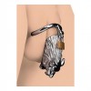 This tiger-inspired chastity cage adds a feline touch to chastity play. It is constructed from solid, smooth stainless steel, providing a firm cage feel, squeezing the submissive's testicles and enveloping the penis in the tiger-patterned tunnel. The open-ended cage allows the submissive to relieve themselves while locked up, making it ideal for prolonged chastity sessions. It includes a secure locking mechanism with a padlock and three keys.