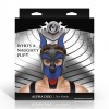 Vegan leather dog mask, adjustable and breathable, with removable snout and realistic canine look.