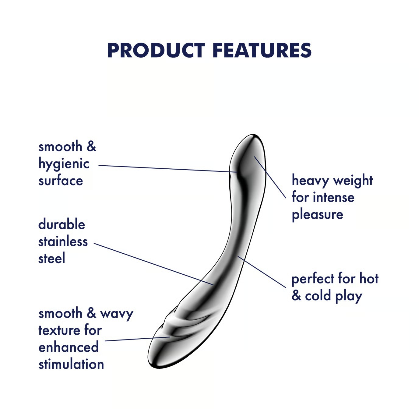 Das schwere Edelstahldesign verstärkt jede Bewegung und bietet Ihnen mehr Intensität bei weniger Kraftaufwand. Lassen Sie die Schwerkraft die Arbeit übernehmen, während das solide, schwere Gefühl die Penetration verbessert und Sie mit minimalen Bewegungen tiefer in die Glückseligkeit führt. Außerdem ist die ultraglatte Edelstahloberfläche nicht nur luxuriös glatt, sondern auch unglaublich leicht zu reinigen, porenfrei und absolut körpersicher.