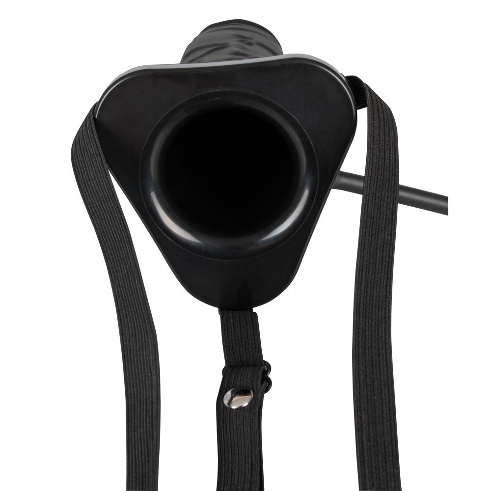 Sturdy inflatable dildo with hollow interior and adjustable straps.