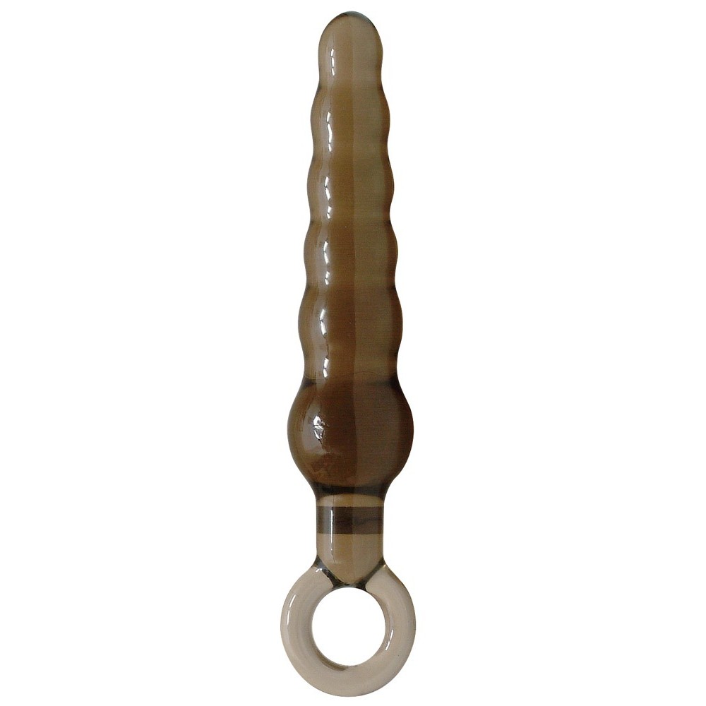Flexible and bendable anal beads with a wavy design and fastening ring.