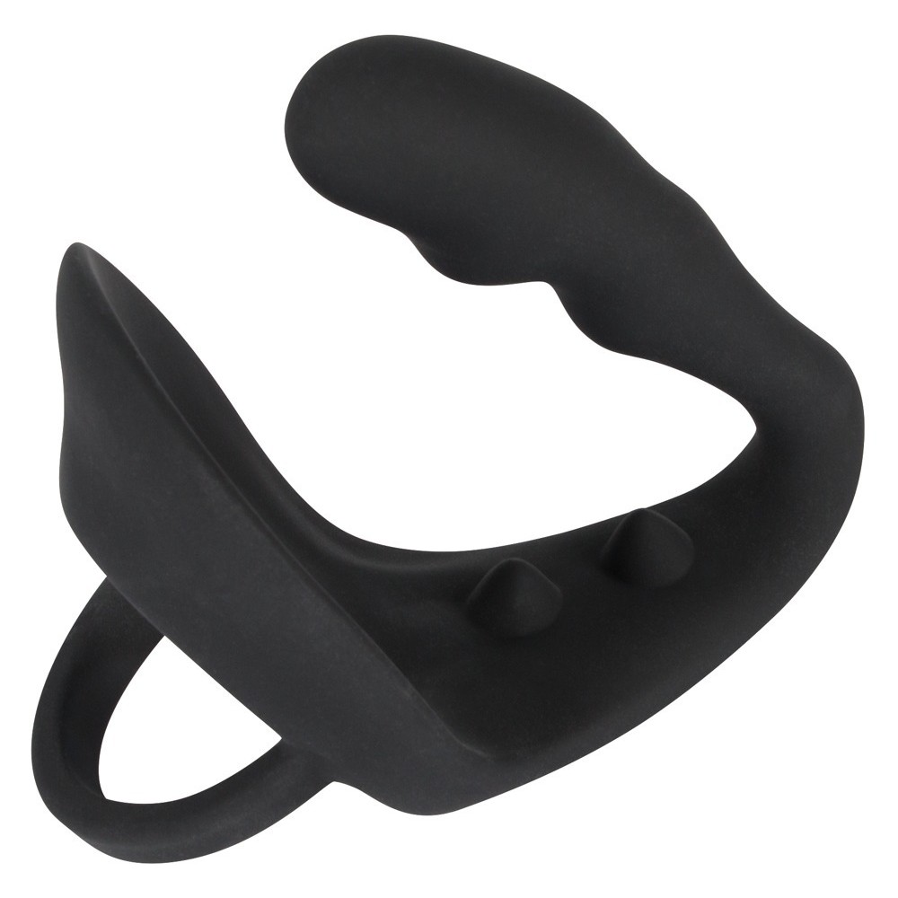 This black cock ring combines an additional anal plug with a stimulating perineal bridge, offering pleasure in multiple spots. Pure ecstasy guaranteed!