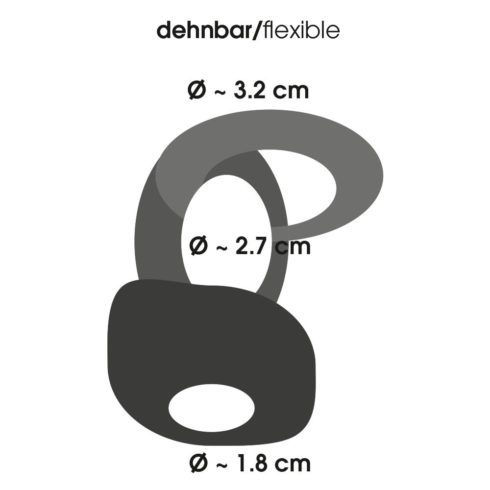 Penis and testicle ring with stimulating grooves on the inside. Transparent/smoked. Rings Ø 3.2 cm, 2.7 cm and 1.8 cm. Very elastic, easily adapting to both length and diameter.