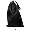 Black storage bag with drawstring closure. Approx. 24 x 35 cm.