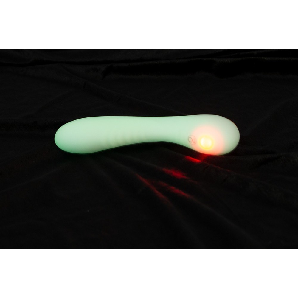 The exciting Glow in the Dark G-spot vibrator from You2Toys has a fluorescent Soft Touch texture that glows in the dark for a long time. It can even be used underwater. This waterproof silicone vibrator only needs to be exposed to a light source, such as a lamp, to activate its luminous effect.
