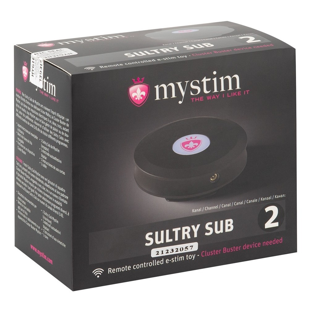 The rechargeable Sultry Sub is an electrosex receiver with an included remote control. An unlimited number of Sultry Subs can be connected to the electric stimulation device Cluster Buster. They then send electric impulses to one, two or three Mystim toys or even to an unlimited number. Of course, the Sultry Sub is also compatible with the masturbators Opus E Donut, E Anus and E Vagina.