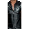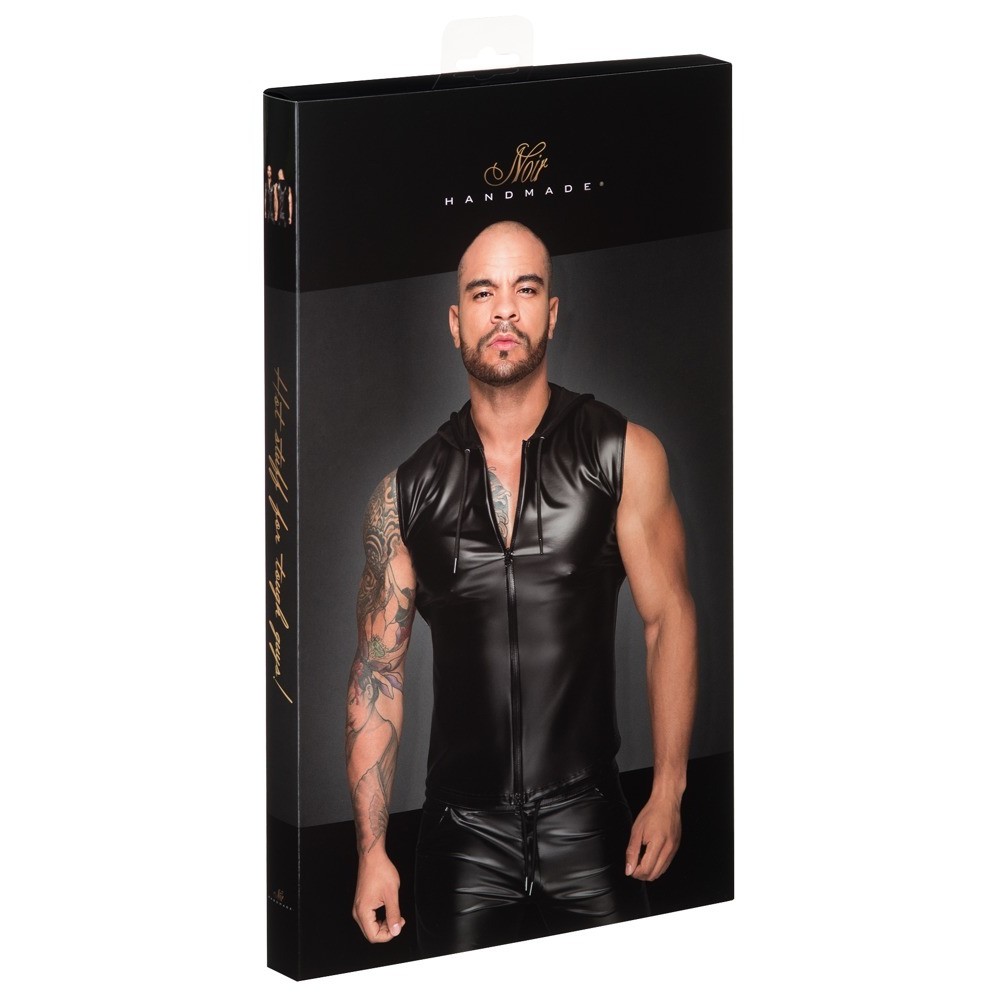 Short-sleeved hooded shirt from Noir in a black wet look. Soft and stretchy throughout for a perfect fit and high comfort. Soft jersey hood with drawstring and full-length two-way zip at the front.