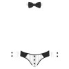 Svenjoyment set comprising a jockstrap, 2 wrist cuffs and a tie. The jockstrap features an elegant pinstripe insert and decorative buttons, with an open-back design for a bolder look. Made from stretchy, comfortable fabric, ideal for more daring moments.