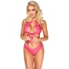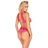 A seductive set from Kissable comprising a soft bra and thong, featuring elegant satin bows. The bra has a bow at the front, whilst the thong features a bow on the V-shaped cut above the lower section. Entirely crafted from fine, soft and stretchy pink lace for maximum comfort. The bra has hook-and-eye fastenings at the neck and back for a perfect fit.