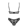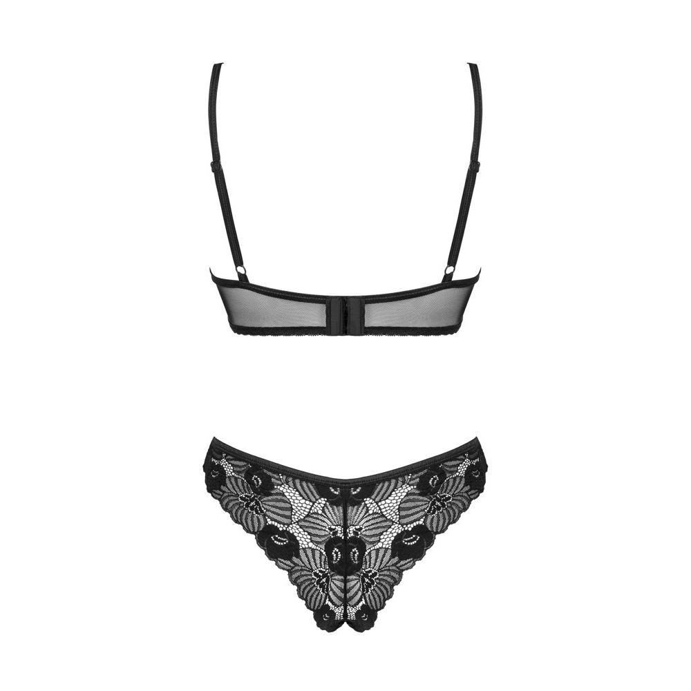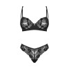 The Serena Love lingerie set by Obsessive consists of an underwired bra and black floral lace thong. Soft and stretchy, it adapts perfectly to the body, ensuring a comfortable fit. The bra has an adjustable hook fastening at the back, as well as adjustable straps for a perfect fit.