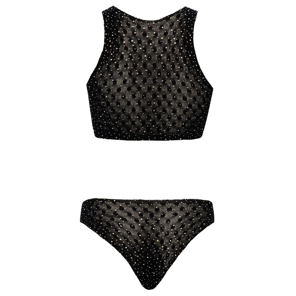 Cottelli FANTASY top and thong, crafted from a delicate, soft, stretchy and semi-sheer fabric, embellished with large rhinestones. The top features an elegant cut-out at the neckline, enhancing the silhouette. With no seams or protruding hems, it offers a perfect fit and a high level of comfort.