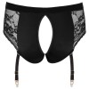 Black strap-on briefs with straps from Bad Kitty, crafted from a combination of soft, stretchy microfibre and delicate lace. The double-layered front features an opening with an integrated elastic ring (Ø 3.5 cm), ideal for attaching accessories compatible with a suction base. It also features a seductive cut-out at the back. The straps are adjustable and fully removable, ensuring versatility and comfort.