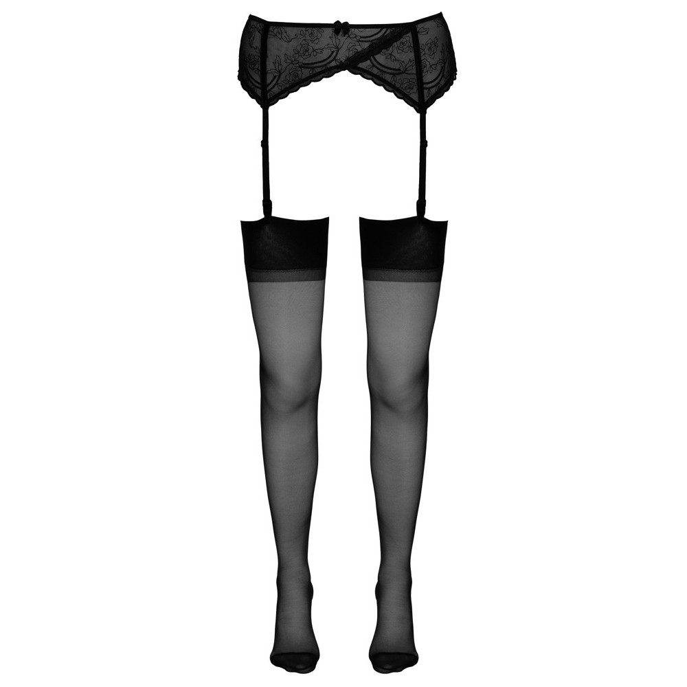 Soft, velvety stockings with a classic top, decorative seam and Cuban heel, ideal for wearing with a suspender belt. 15 denier, Oeko-Tex certified.