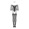 The black G333 bodystocking reinvents the classic bodystocking with a teddy-style cut and open crotch, connected to stockings for an enveloping and provocative effect. The halter neckline enhances the neck, back and shoulders, while the floral motif adds an original and irresistible touch. Made from stretch fabric, it adapts to the body for a comfortable and seductive fit.