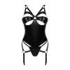 The Armares set by Obsessive includes a corset with suspenders and a perfectly fitting thong, in a modern, stretchy and soft wet style. The underwired cups feature seductive cut-outs and small jewellery elements. The straps and suspender straps with smart rings are fully adjustable, as is the hook fastening at the back.
