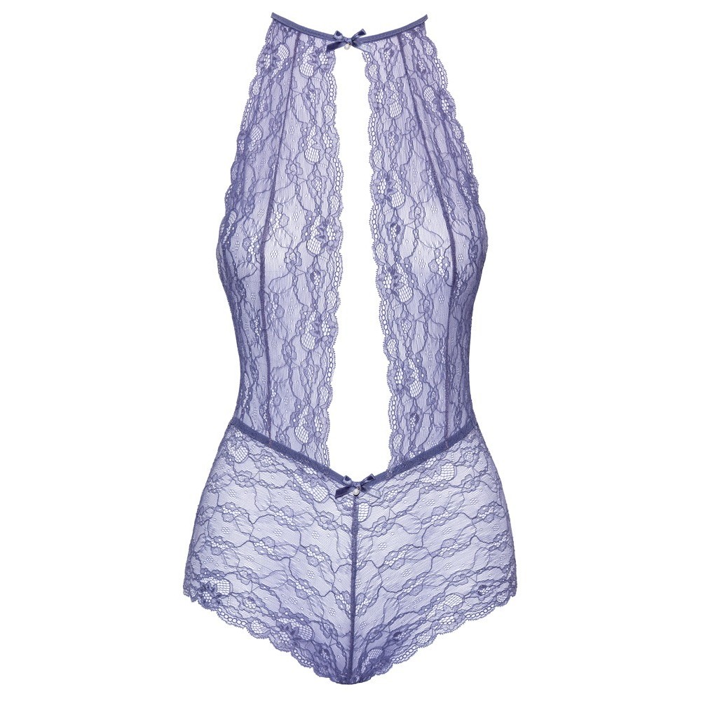 A teddy by Kissable, made entirely from fine lace. It features a neckline at the front and back, creating an elegant and alluring look. Extremely soft and stretchy for maximum comfort when worn. The neckline and waistband are adorned with small bows and sparkling stones. The neckline has a small hook-and-eye fastening at the back.