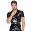 The Black Level polo shirt is made entirely of shiny black vinyl. It has a slim, figure-hugging fit and classic polo shirt style: short sleeves, collar and a small row of press studs at the front. It fits snugly but is stretchy, ensuring surprising comfort when worn.