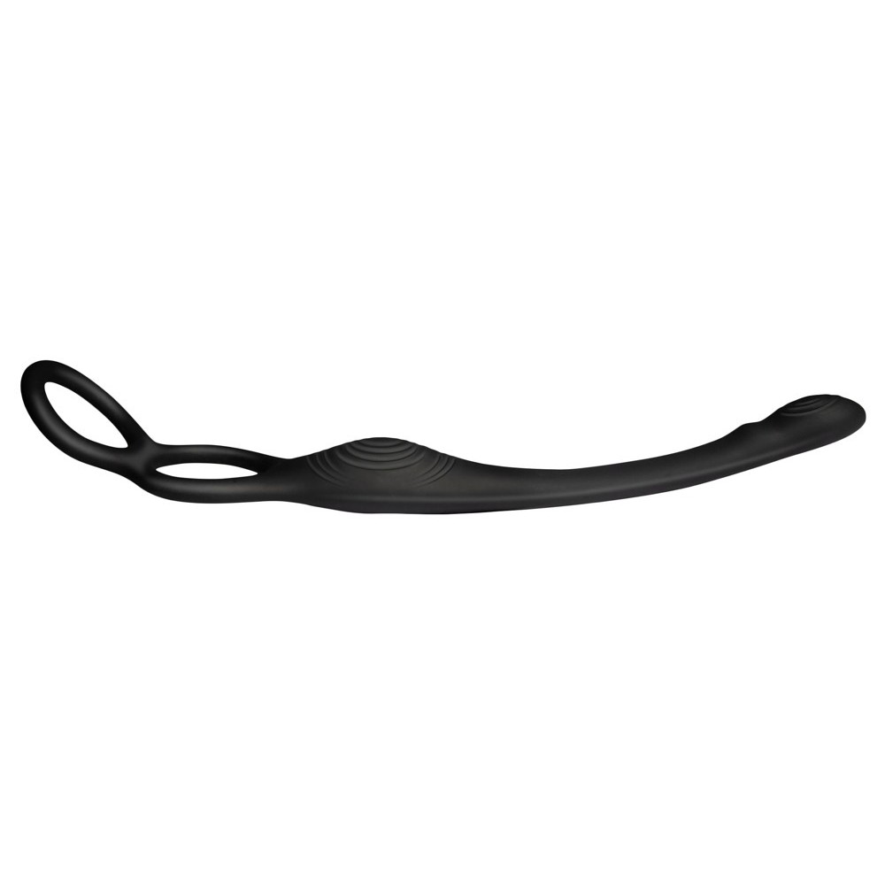 The prostate stimulator and flexible erection support rings are connected by a vibrating perineum stimulation bar, which prevents the stimulator from sliding in too far and keeps it in the ideal position. It can be worn for long periods, even discreetly under clothing. The soft, velvety silicone coating provides a smooth and pleasant feel, while the textured dots intensify the stimulation.