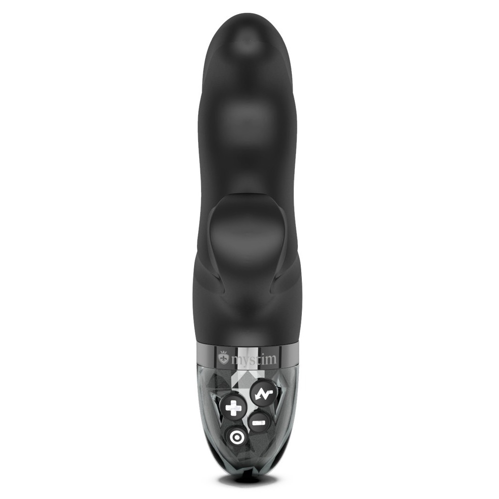 The practical Hop Hop Bob E-Stim rabbit vibrator from Mystim has a perfectly curved tip for G-spot stimulation and a flexible clitoral stimulator. With 8 vibration modes and 5 electrostimulation modes, it offers a huge variety of sensations for simultaneous internal and external stimulation.