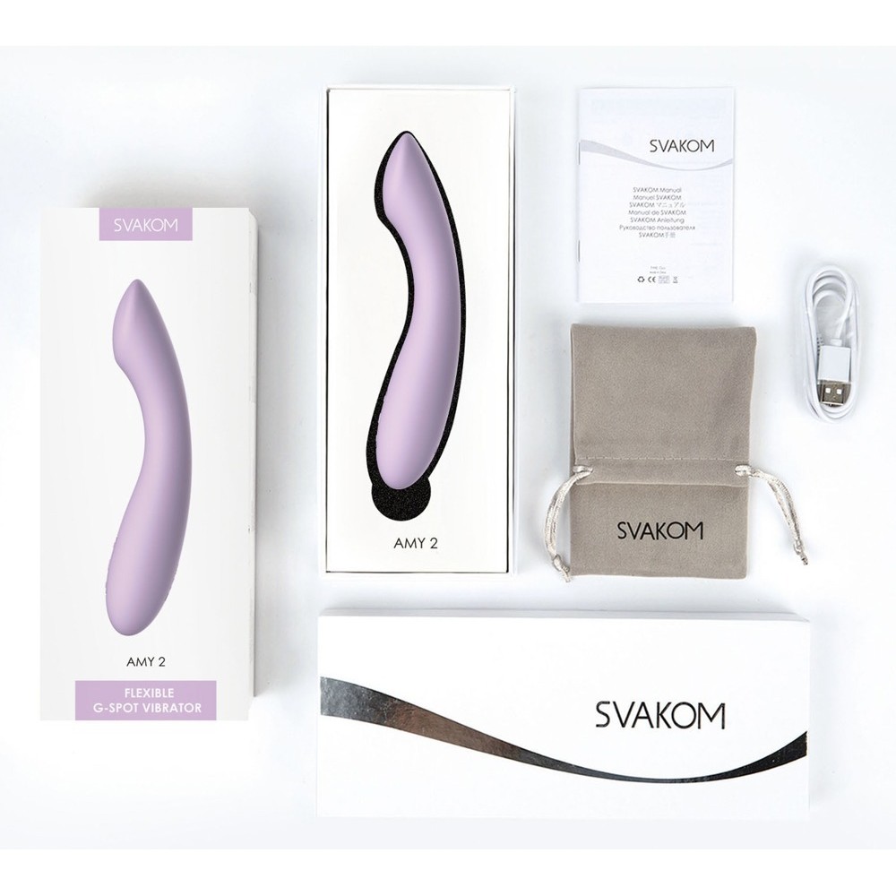 The Amy 2 vibrator from SVAKOM is in a wonderfully ergonomic curved shape and it also has a flattened tip which is perfect for spot-on pleasure spot stimulating in and on the body. The flexible silicone vibrator is velvety soft and this means that it is very easy to hold and it also slides over the skin and into intimate depths almost on its own as well. This mean that the light but intense vibrator can also be easily integrated into solo or couple's fun.