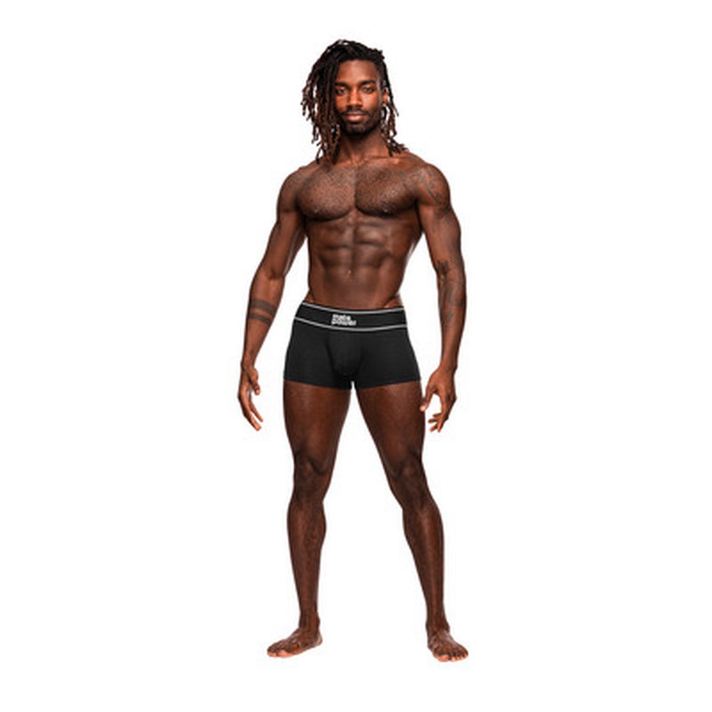 From the Male Power Modal Rib collection, this model includes a Pouch Short with a 6.3 cm wide elastic waistband with plush branding, a contoured pouch and mid-thigh length legs.