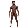 Male Power leather body harness with zip fastening and adjustable straps, comfortable fetish design.