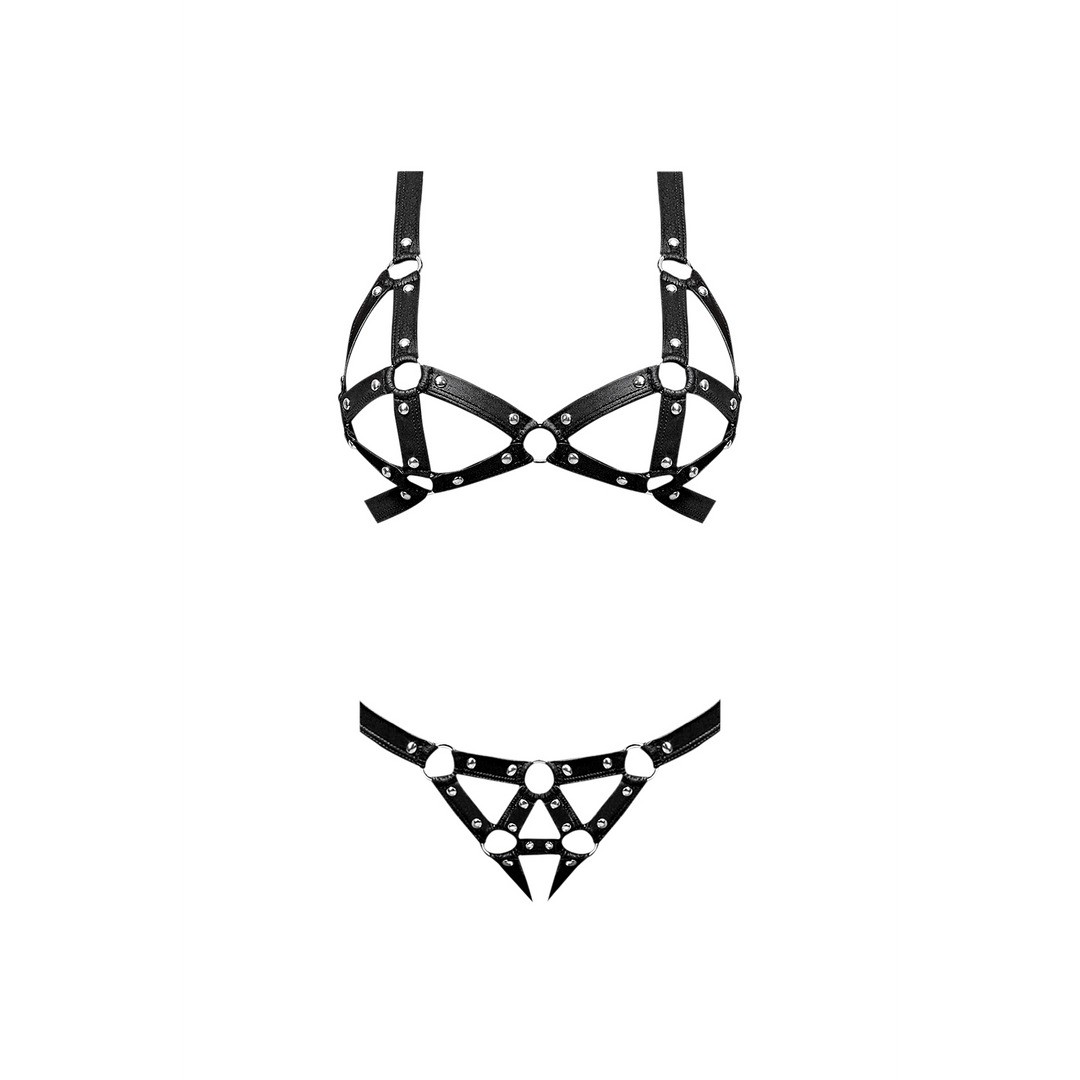 Fetish-style set with bra and thong with straps, from the Lust Fetish by Magic Silk collection, daring, elegant and comfortable.