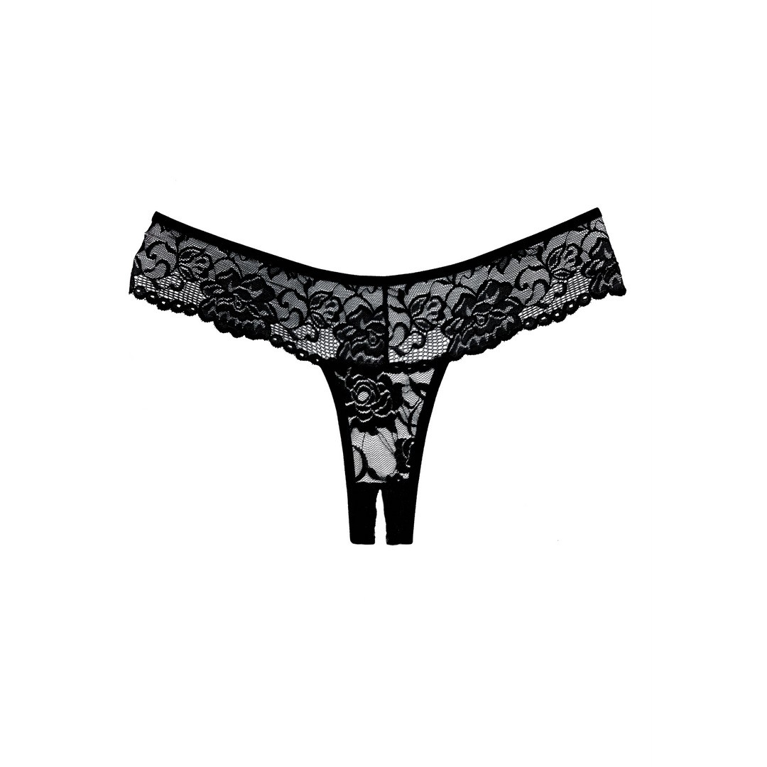 Sumptuous lace wraps your hips in this dreamy all lace crotchless thong.