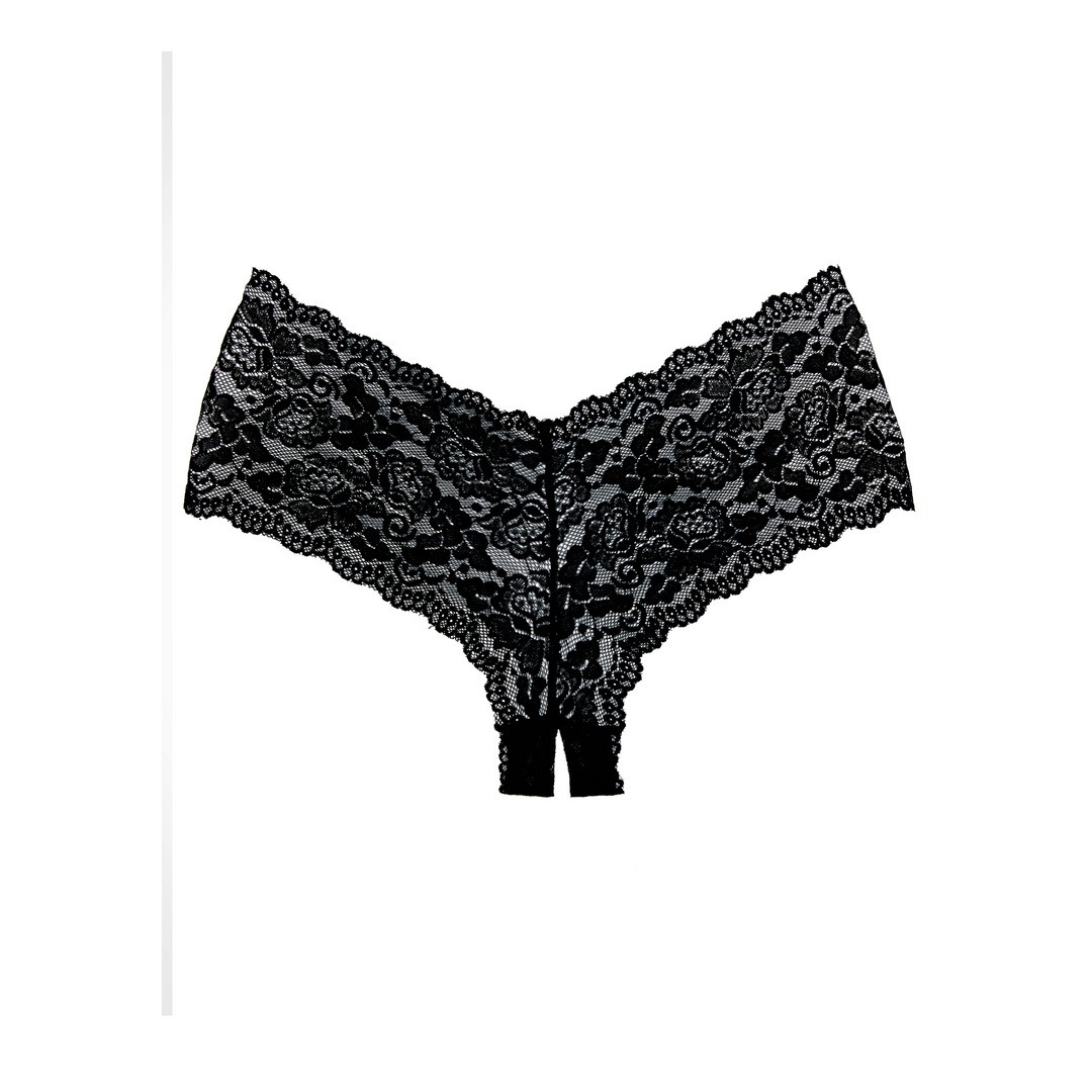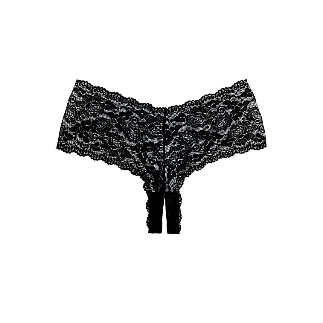 The classic lace booty short gone wilde with a crotchless twist, hugging the hips and sweetening the derriere.