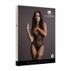 This elegant bodystocking combines sensuality and comfort with a touch of sophistication. It features a lace pattern on the top and integrated fishnet stockings, joined by delicate frayed straps that create the effect of suspenders.