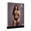 Bodystocking with a garter effect combining fishing net and fence netting, designed to offer contrast and boldly enhance curves. It features a keyhole detail at the top, adding a provocative touch to the design. The stretchy fabric easily adapts to the body, ensuring comfort and flexibility for sizes XL to 5XL. Le Désir — exclusive design by Shots.