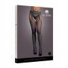 Garter-style stockings with a waistband and crossed back seam. The mesh pattern enhances the legs and creates a provocative and elegant look.