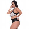 Maid costume with black and white bra and thong with lace and satin details, adjustable and comfortable, which enhance the silhouette.